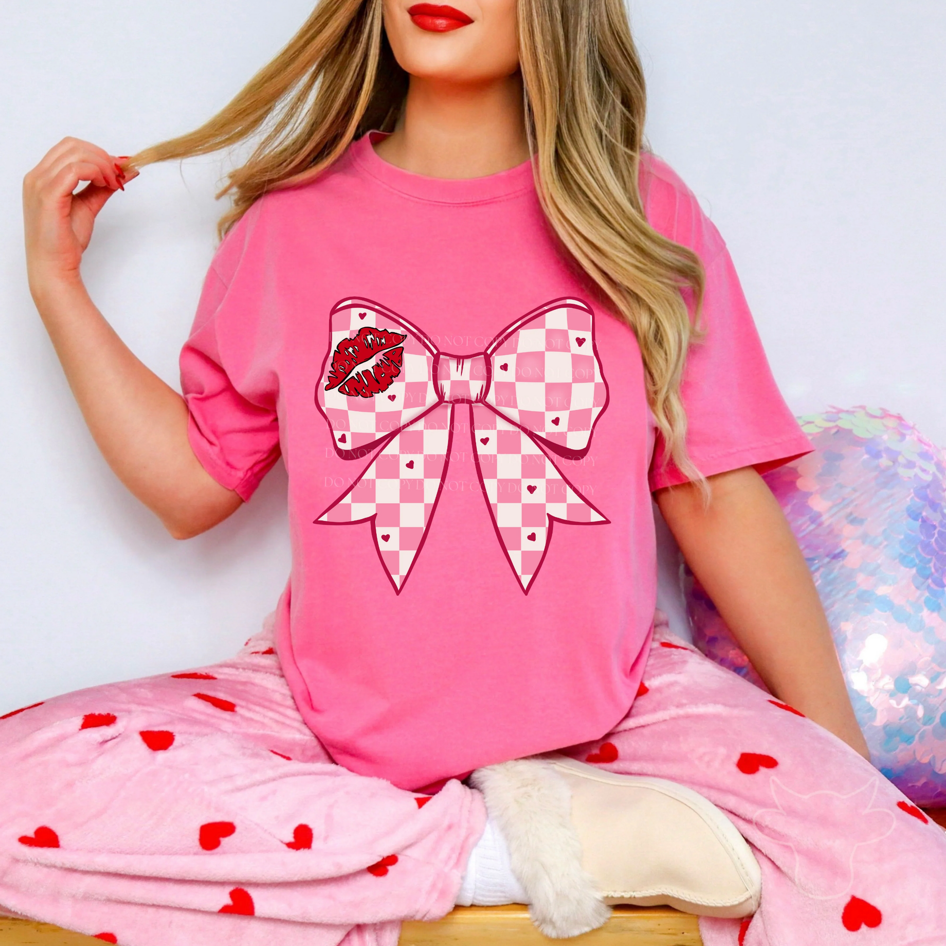 CHECKERED PINK BOW DTF Transfer