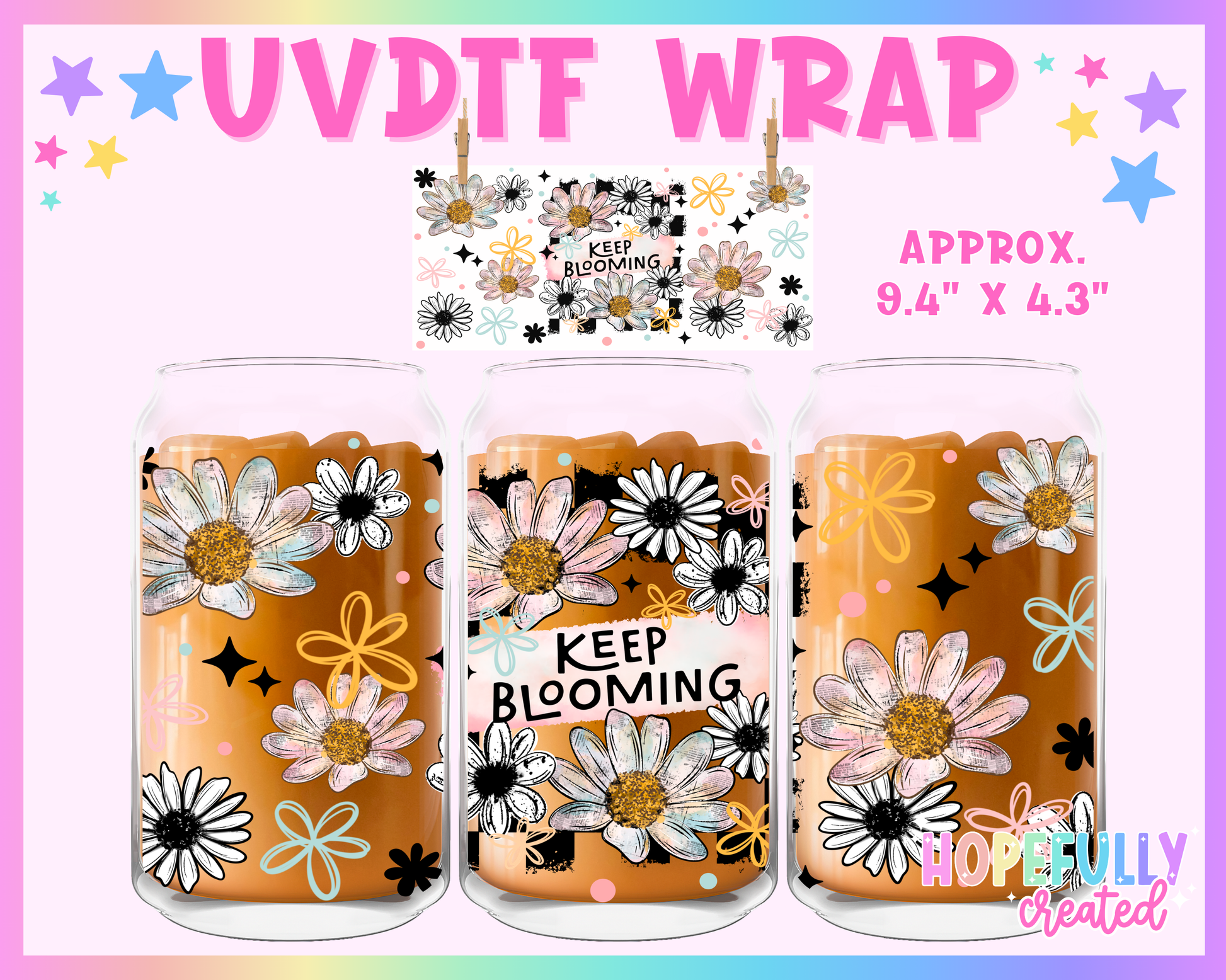 Keep Blooming UVDTF Glass Can Wrap