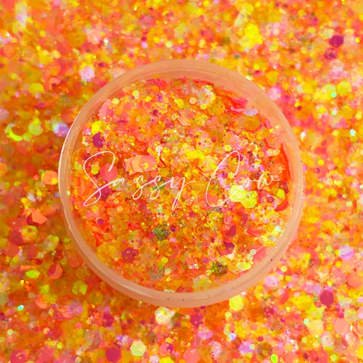 Sassy Cow Co. Chunky Translucent mix of pink, orange, and yellow Glitter
