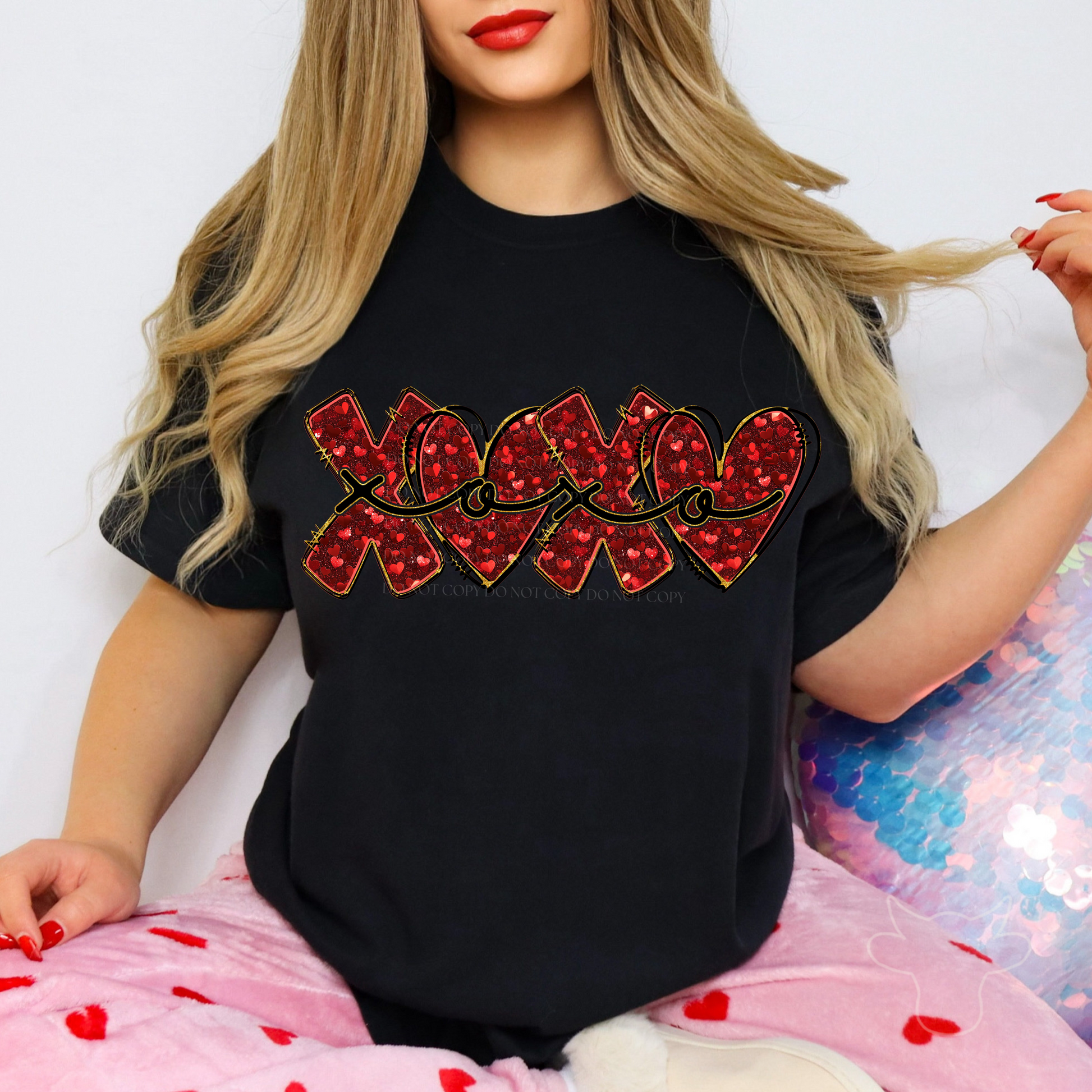 RED FAUX SEQUIN XOXO DTF Transfer